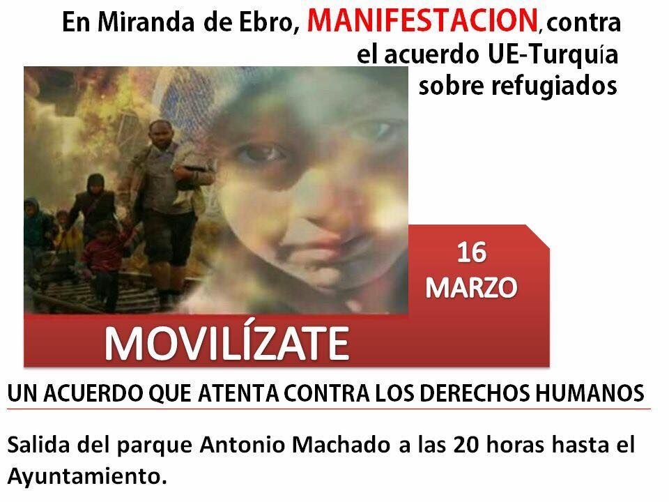 Contra el acuerdo UE-Turquia sobre personas migrantes/refugiadas. MOVILIZACIONES 16 DE MARZO