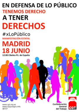 El próximo 18 de junio la CGT convoca Manifestación Estatal en Madrid bajo el lema «En Defensa de lo Público» «Tenemos derecho a tener derechos»