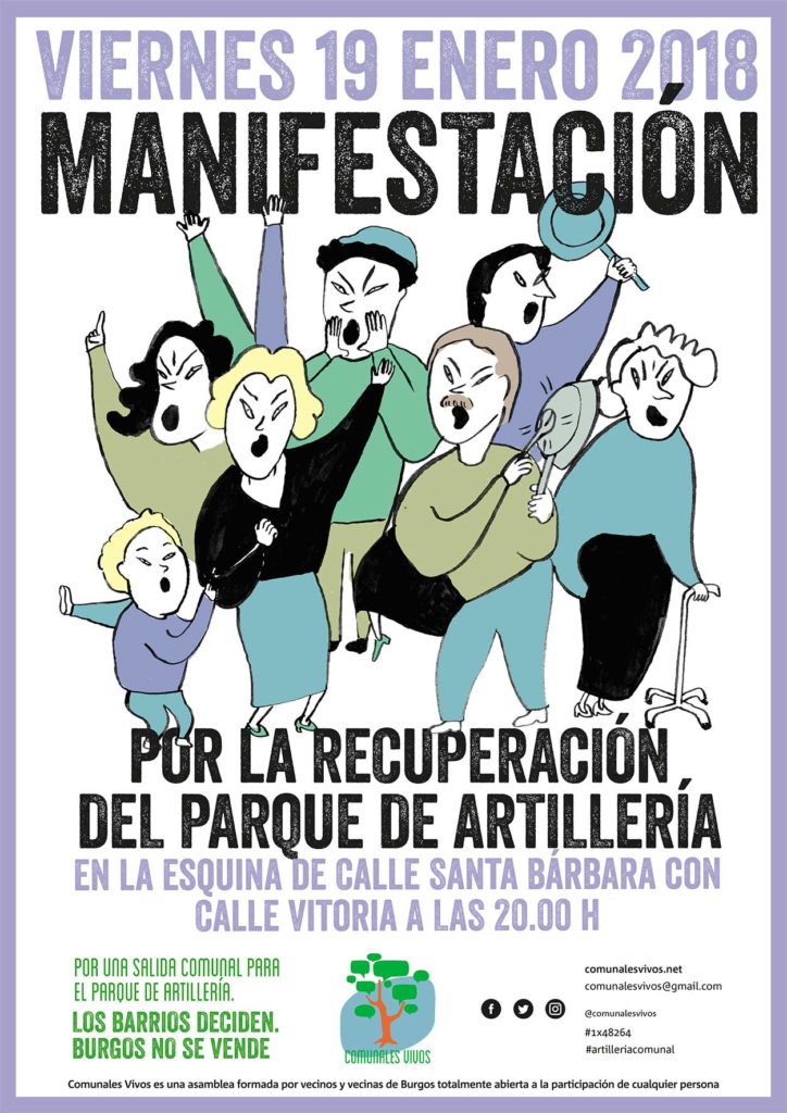 Ahora es mas necesario que nunca una salida comunal para el Parque de Artillería. Esto significa que pase a manos de l@s vecin@s de Burgos –no del Ayuntamiento o privadas–, para su gestión de manera asamblearia. Son muchos los ejemplos a lo largo de la historia, y en la actualidad, que demuestran que este tipo de funcionamiento es mucho más honesto, eficaz y respetuoso. Aquí, en Castilla, las reuniones de los Concejos abiertos (asambleas vecinales), mientras fueron soberanos, eran órganos de toma de decisión en colectivo sobre los asuntos que incumbían a todos. También en el movimiento obrero, y más recientemente en los movimientos sociales, son innumerables las experiencias en las que los propios afectados resuelven sus problemas organizados de manera horizontal, participativa e igualitaria. En definitiva, exigimos que no se nos siga tratando en política con desprecio, y poder desplegar todas nuestras capacidades sociales en el único interés del bien común.