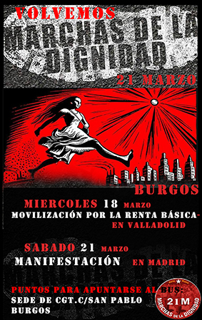 Las marchas de la dignidad vuelven a pedir a la clase trabajadora que se movilice, que demuestre en la calle que QUEREMOS VIVIR CON DIGNIDAD, que identifiquemos a los culpables de esta grave e injusta situación social y defendamos el programa de las marchas de la dignidad: Pan, Trabajo, Techo y Dignidad.